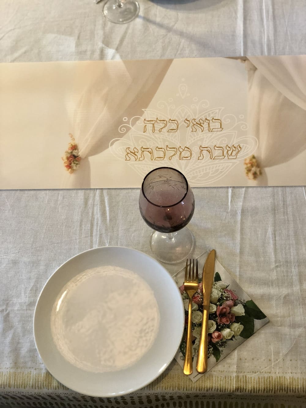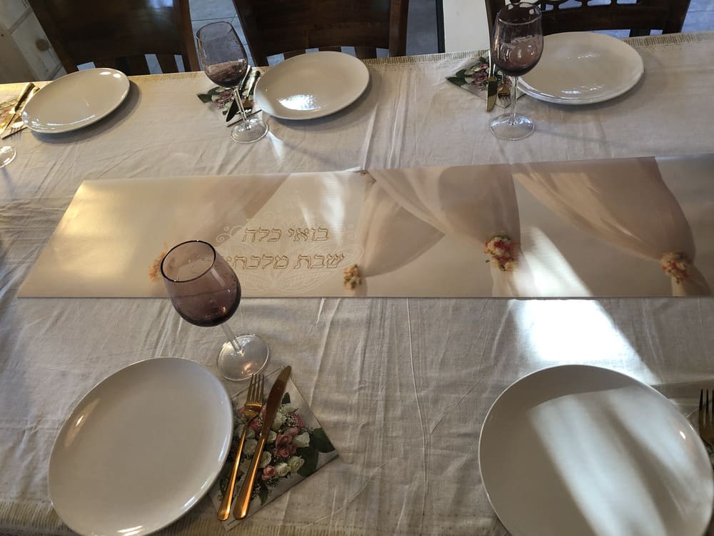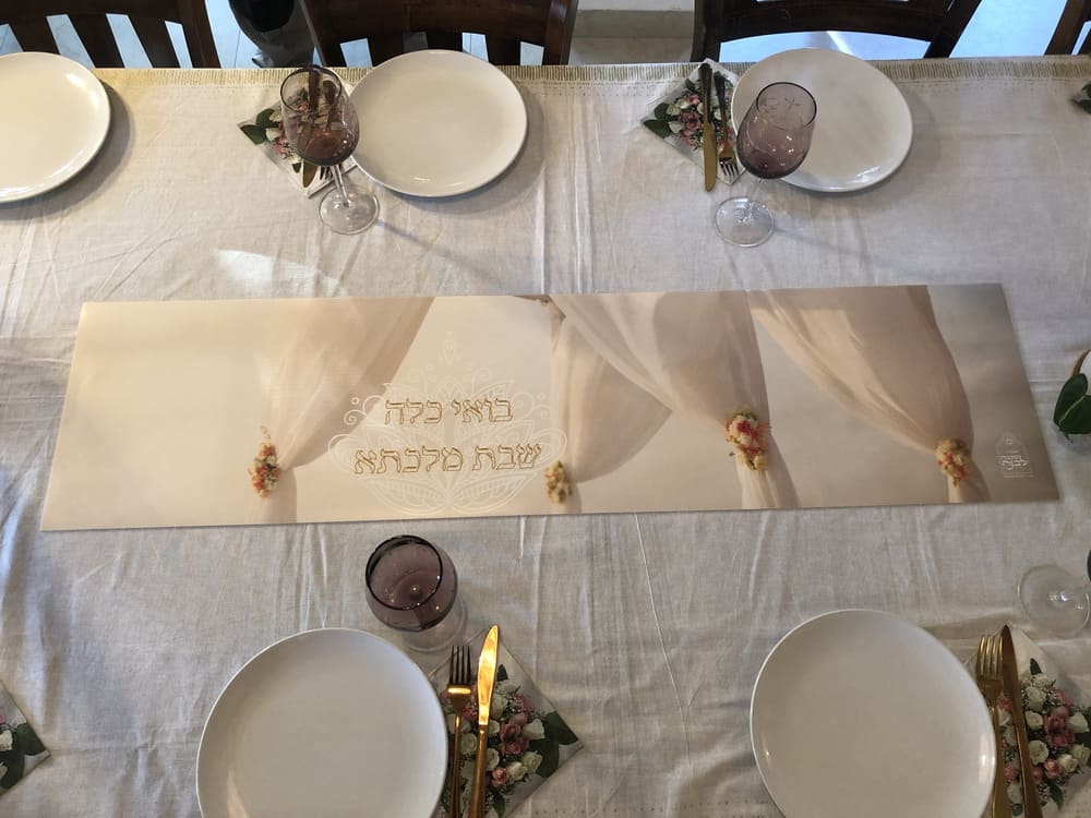 ראנר PVC חגיגי לשולחן שבת וחג, ניתן להניח סירים חמים.