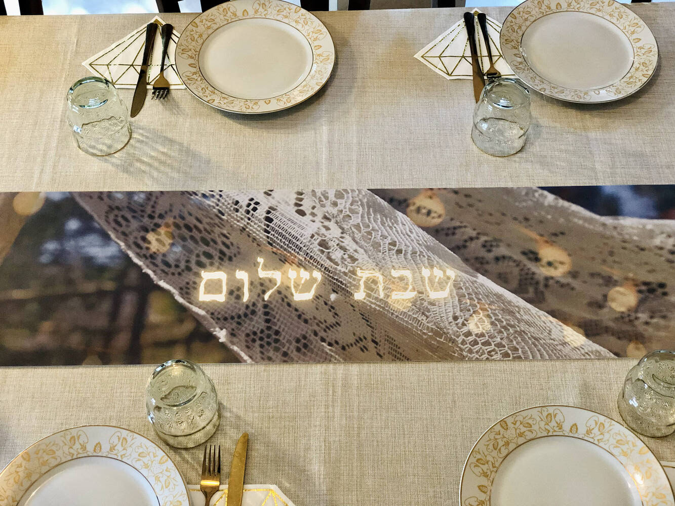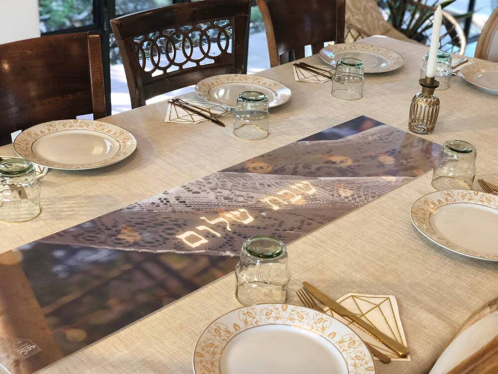 ראנר PVC חגיגי לשולחן שבת וחג, ניתן להניח סירים חמים.