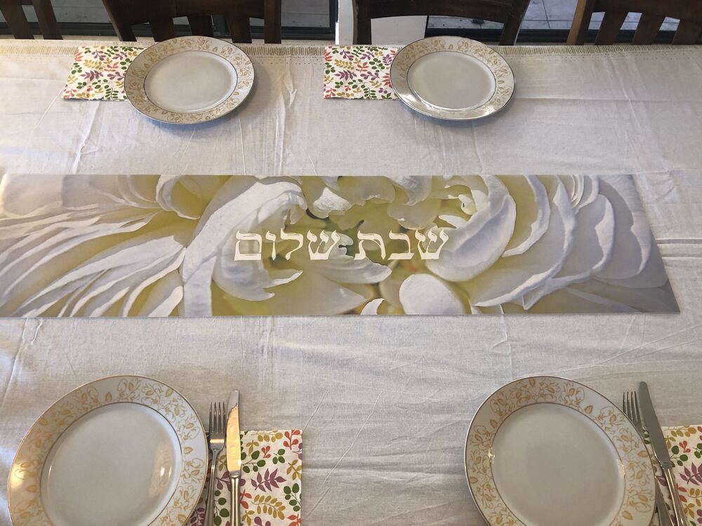 ראנר שבת שלום פרחים לבנים